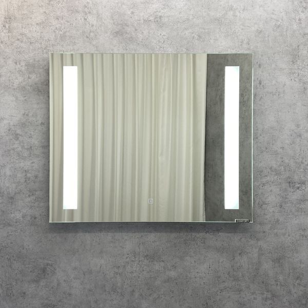 Зеркальное высококачественное полотно с амальгамой на основе серебра. Зеркало оснащено светодиодной подсветкой в виде двух вертикальных полос по краям полотна, и сенсорным выключателем.