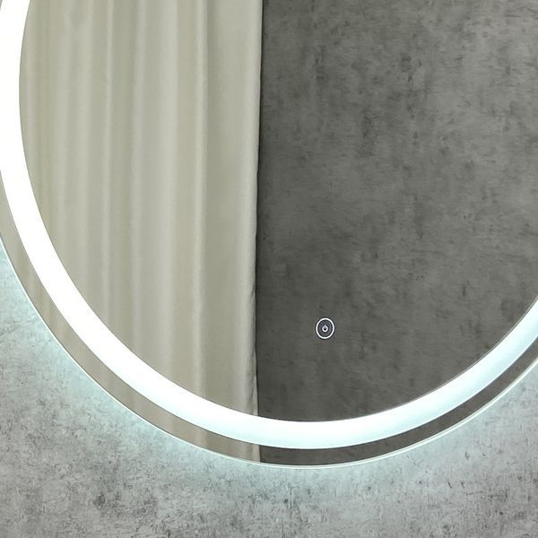 Зеркальное высококачественное полотно с амальгамой на основе серебра. Зеркала оснащены светодиодной подсветкой в виде полосы по окружности полотна, и сенсорным выключателем.