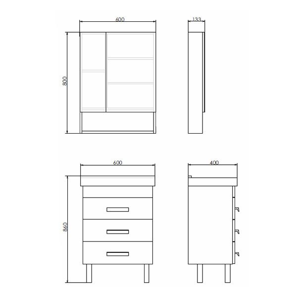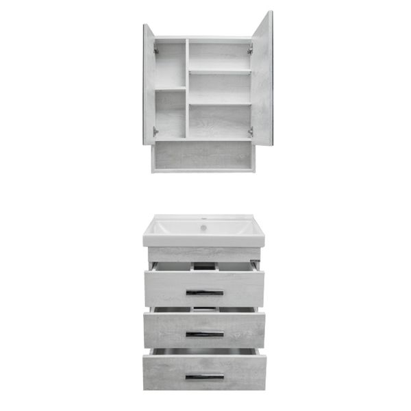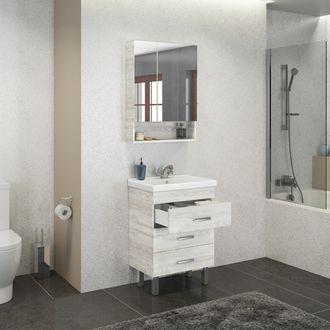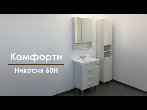 Комплект мебели для ванной комнаты Никосия 60Н может быть дополнен пеналами Верона 35 или Верона 35Н в цвете Дуб белый, или пеналом Марио 40 в цвете Дуб темный.