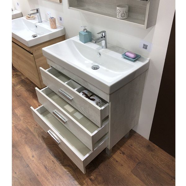 Тумба-умывальник "Никосия-80Н" дуб белый с раковиной Fest 80 F01