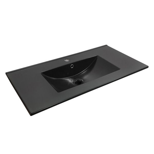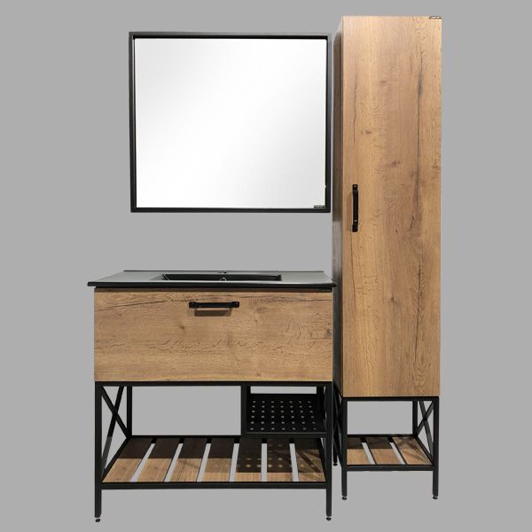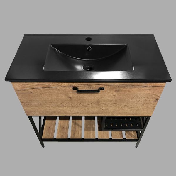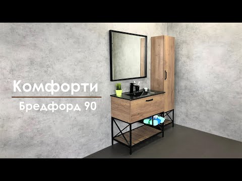 Тумба-умывальник "Бредфорд-90" дуб темный, с раковиной COMFORTY 90E черная матовая
