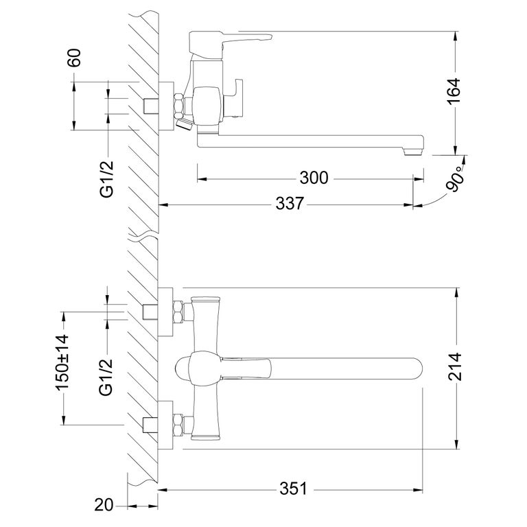 Смеситель универсальный с плоским поворотным изливом 300 мм