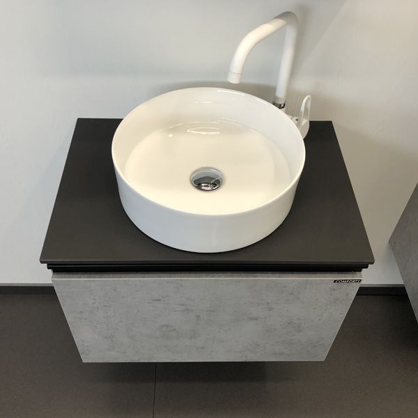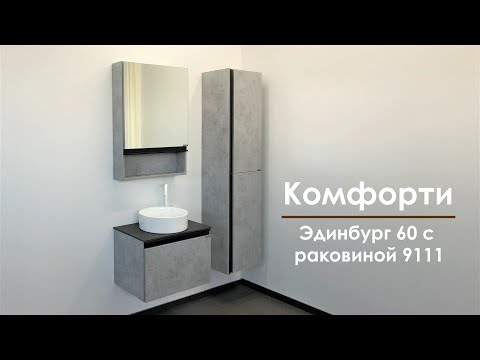 Тумба-умывальник "Эдинбург-60" бетон светлый с черной столешницей, с раковиной COMFORTY 9111