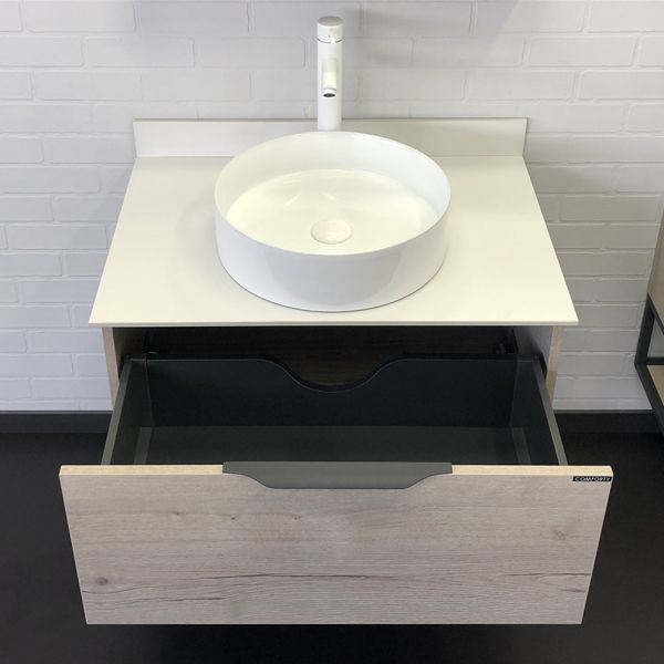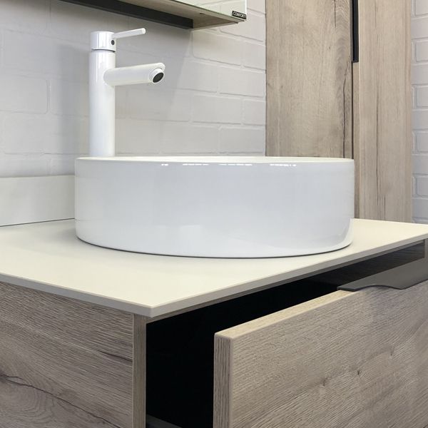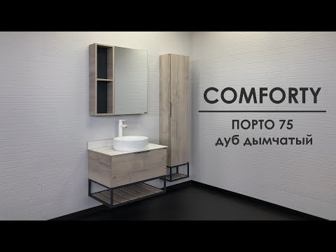Тумба-умывальник "Порто 75" дуб дымчатый с белой столешницей с раковиной COMFORTY 9110