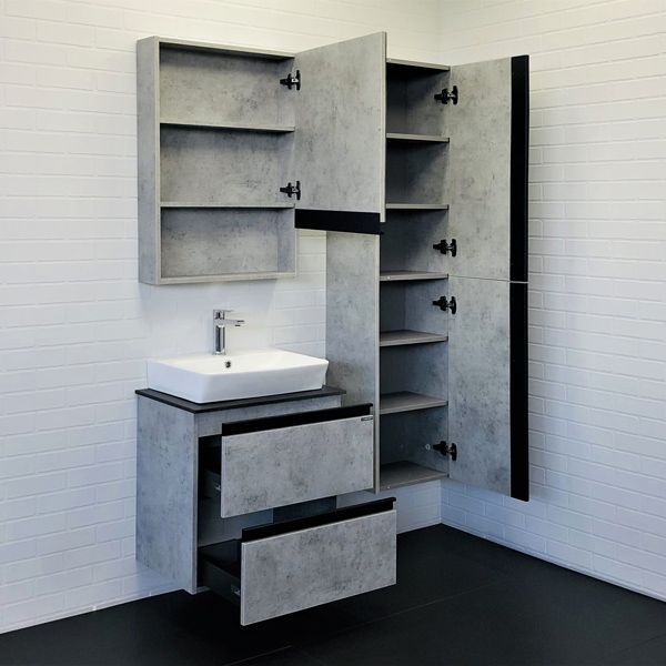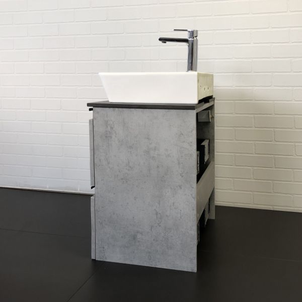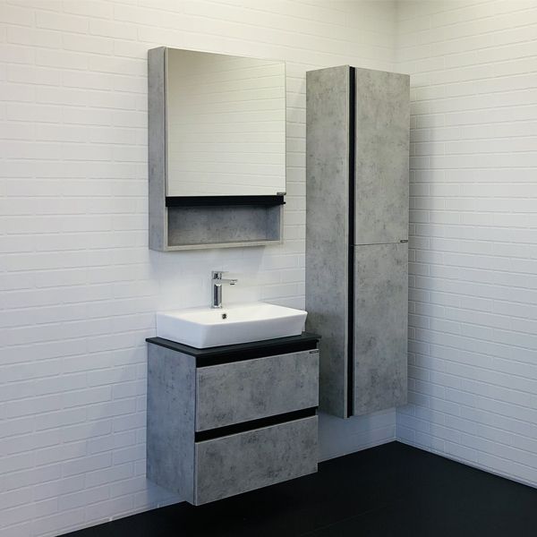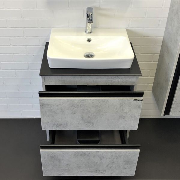 Тумба-умывальник "Эдинбург-60-2" бетон светлый с черной столешницей, с раковиной COMFORTY 9055RA-50