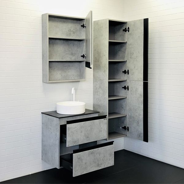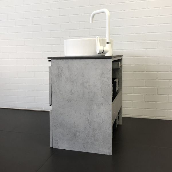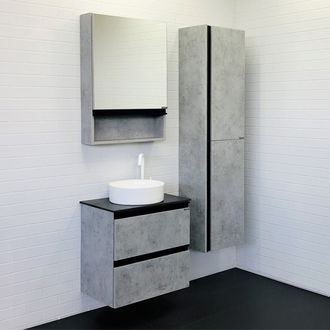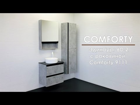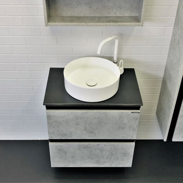 Тумба-умывальник "Эдинбург-60-2" бетон светлый с черной столешницей, с раковиной COMFORTY 9111