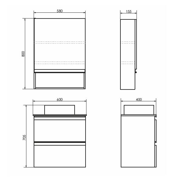 Подвесная тумба с двумя ящиками подготовлена для подключения водоснабжения и канализации из стены и/или снизу!