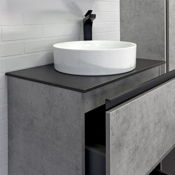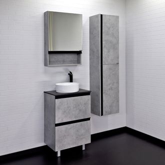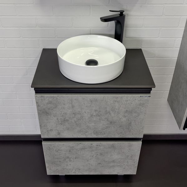 Тумба-умывальник "Эдинбург-60-Н" бетон светлый с черной столешницей, с раковиной COMFORTY 9111
