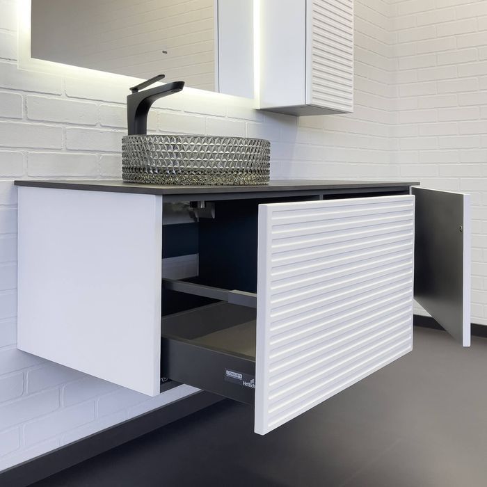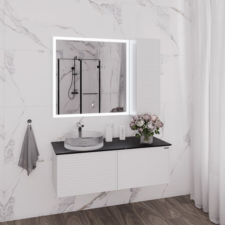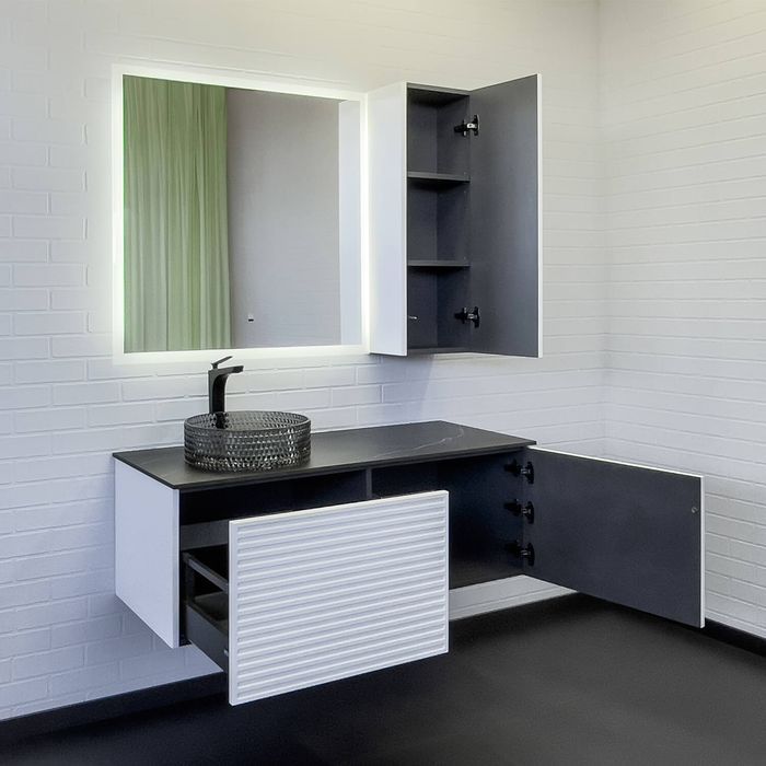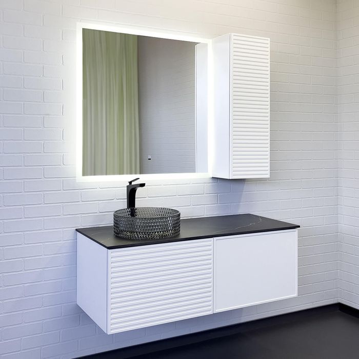 Тумба-умывальник "Геленджик-120" белый матовый со столешницей калакатта блэк, с раковиной COMFORTY CF21001